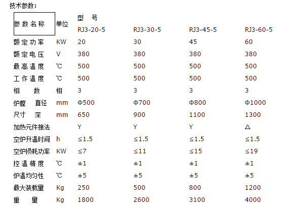 RJ3系列井式鋁合金時效爐結構,外殼由鋼板和型鋼制成圓柱形爐體,爐蓋內面采用不銹鋼板制成。爐襯采用超輕質節(jié)能微珠耐火保溫磚砌筑。爐襯與爐殼夾層置硅酸鋁超長纖維氈保溫,間隙填充膨脹保溫粉。屬于典型節(jié)能型爐襯結構,節(jié)電30%-40%。電阻絲采用0Cr25Al5高電阻合金絲繞成螺旋狀安裝在爐膛的擱絲磚上。爐膛內放置有不銹鋼裝料筐。爐蓋采用手動扛桿升降,大型爐蓋采用電動變速機升降。為了使工件均勻加熱,在爐蓋上安裝有耐熱不銹鋼軸和風葉制成的熱風循環(huán)風機,工件在加熱過程中,熱空氣在鋁合金時效爐內上下高速循環(huán)以保證工件均勻加熱。為保證操作安全在升降機構附近裝有限位開關,此開關與鋁合金時效爐控制柜電源聯鎖,爐蓋關閉時(工作時)接通電源。當爐蓋開啟時限位開關即切斷控制電源,因此加熱元件的電源同時切斷,以保證安全操作。井式鋁合金時效爐出廠時配套自動控溫柜,熱電偶。